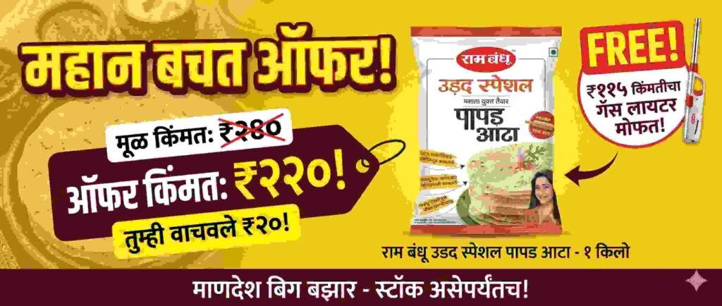 Search× बिस्कीट - नमकीन बिस्कीट फरसाण-चिप्स-कुरकुरे खारी-टोस्ट उपवास स्पेशल चॉकलेट-कॅडबरी इन्स्टंट मिक्स नूडल्स-सूप किराणा किराणा चहा-कॉफी डाळी-कडधान्या तांदूळ-धान्य ड्राय फ्रुट्स तेल-तुप बडीसौफ व ईतर सर्व तळण लोणचे-चटणी सॉसेस एनर्जी ड्रिंक्स मसाले मटण मसाला चिकन मसाला बिर्याणी मसाला फिश-अंडा मसाला व्हेज मसाले धना पावडर हळद पावडर मिरची पावडर कांदा लसून चटणी खडा मसाला स्पेशल मसाले व ईतर पर्सनल केअर बेबी केअर अंगाचे साबण हेअर ऑईल शांपू-कंडीशनर हेअर कलर टूथब्रश टूथपेस्ट हँड वॉश फेस वॉश फेस केअर फेस पावडर फेस क्रीम लोशन-मॉइश्चरायझर परफ्यूम स्प्रे सॅनिटरी पॅड्स शेविंग-ग्रूमिंग होम केअर भांड्यांचे साबण भांड्यांचे लिक्विड भांड्यांची घासणी फ्लोअर-बाथरूम कपड्यांची पावडर कपड्याचे साबण कपड्यांचे लिक्विड रूम फ्रेशनर्स पेस्ट कंट्रोल दैनंदिन वस्तू वॉटर बॉटल्स कागदी प्लेट्स गृह-उपयोगी डोअरमॅट्स-रुमाल प्लॅस्टिक डबे झाडू-ब्रश शालेय साहित्य पूजा साहित्य अगरबत्ती कापूर सुगंधित-धूप पूजा साहित्य