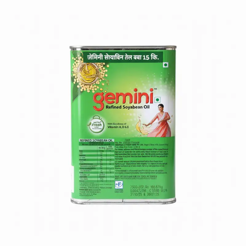 Tags: 15kg, dabba, gemini, soya-oil, soyabean-oil, soyabin-tel, soybean-oil, tin